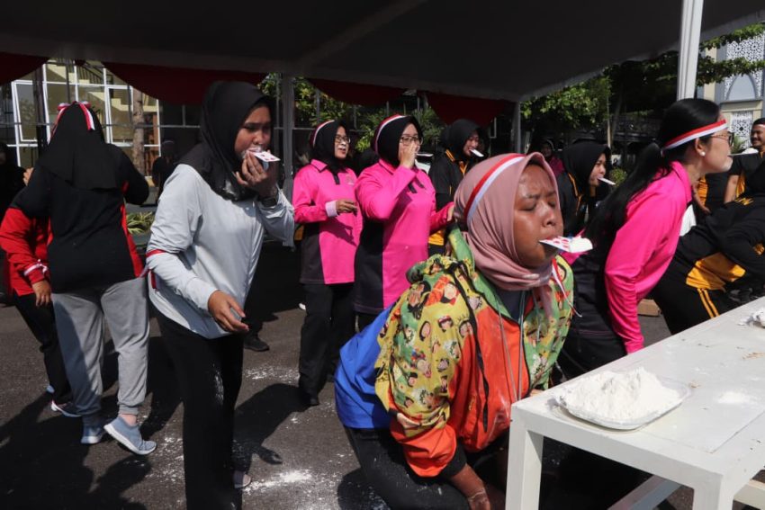 Sedangkan lomba beregu yakni pindahkan tepung dengan alat memakai mulut serta lomba pindah sarung. Kegiatan ini ditutup dengan pembagian doorprize bagi para pemenang lomba-lomba.(red)