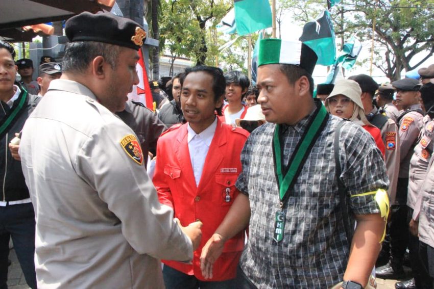 Tuban – Kapolres Tuban AKBP William Cornelis Tanasale, S.I.K., pimpin pelaksanakan pengamanan penyampaian aspirasi damai yang digelar oleh Himpunan Mahasiswa Islam (HMI) dan Gerakan Mahasiswa Nasional Indonesia (GMNI) Tuban di depan kantor DPRD Kabupaten Tuban.